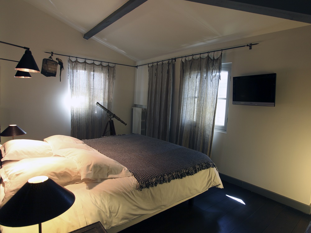 Toutes les suites et chambre sont situées au premier étage du mas et sont exposées plein sud avec vue sur le jardin. Elles sont toutes climatisées et disposent d’un accès wifi, d’une télévision à écran plat donnant accès à un bouquet de chaînes françaises et étrangères, et d’une enceinte audio SONOS. A partir de cette enceinte, vous pourrez puiser à loisir dans la base de données musicale du mas ou accéder à toutes les radios du Net.